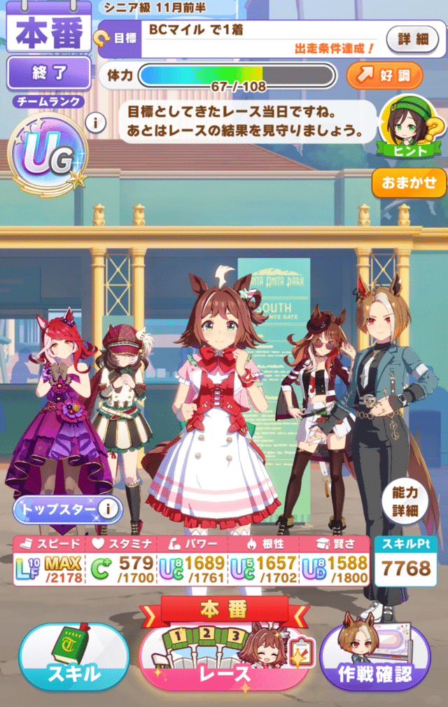 このシナリオのマイル育成よくわからん